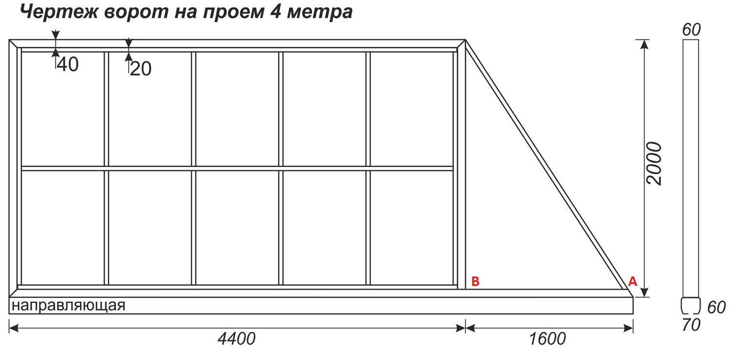 Высота установленных ворот: 2 м Ширина проема: 4 - 4,5 м Материал каркаса: 60х40х2 , 40х20х1,5, 20х20х1,5 Любой вариант наполнения ворот:3D-сетка, профлист, деревянный и металлоштакетник, сварной, кованный. *Цена может меняться в зависимости от вида наполнения Привод: Alutech RTO 500 Засов нижний, проушины под замок включены в цену. Калитка в створе: + 6 000 рублей Фундамент: винтовые сваи 3м / заливной Столбы: 80*80, 100*100 квадратного сечения Доставка, покраска, обустройство закладной, столбов, монтажные работы ВКЛЮЧЕНЫ в цену.